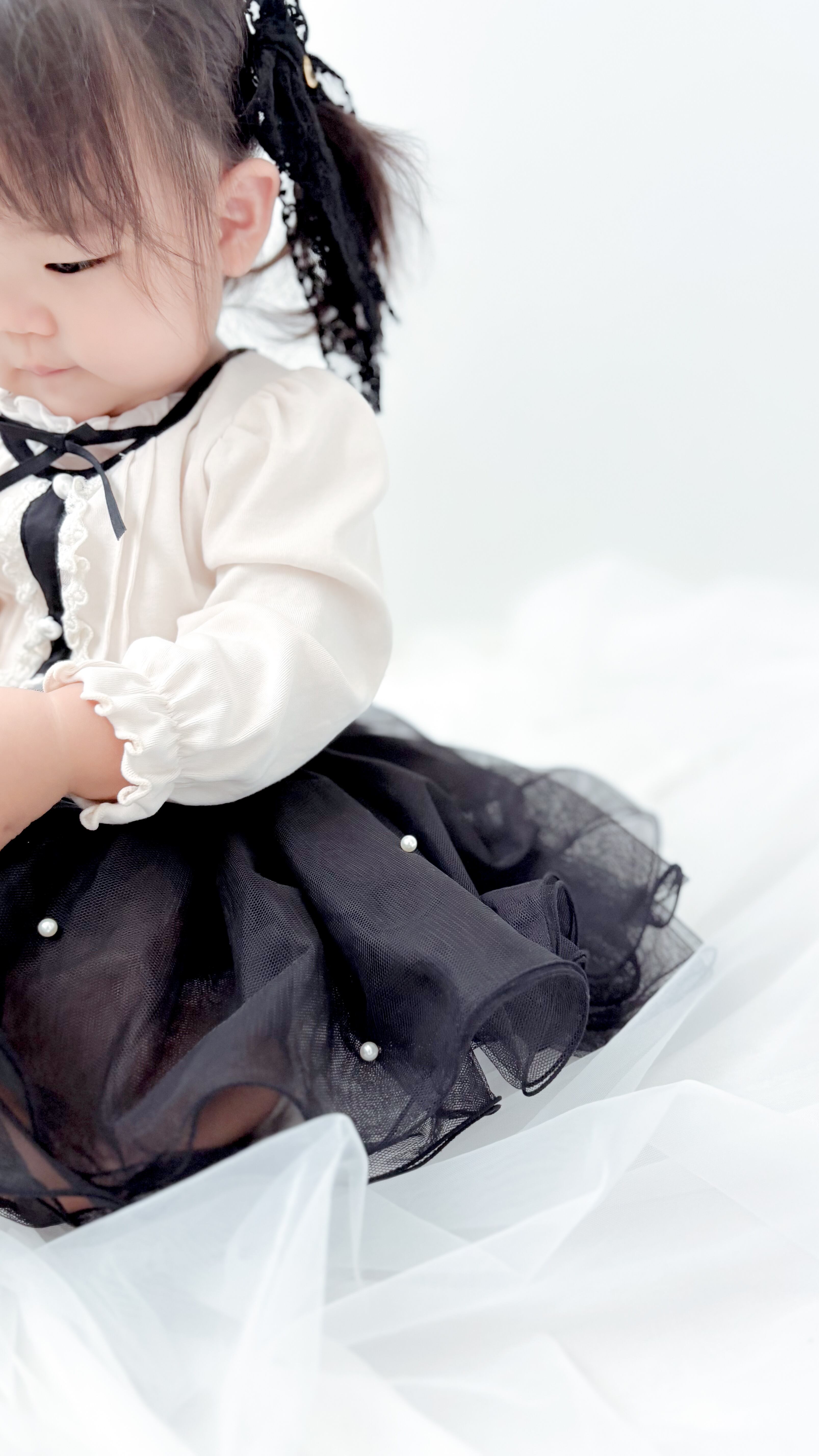 襟元のレースに小さな破れあり
