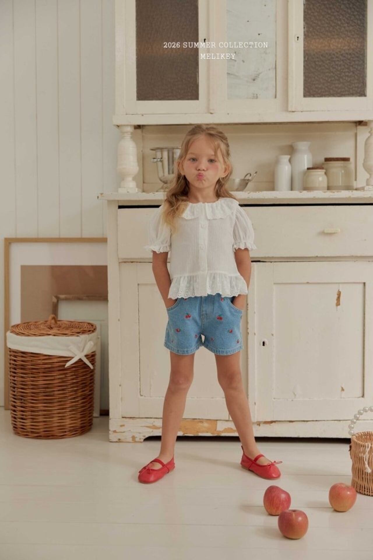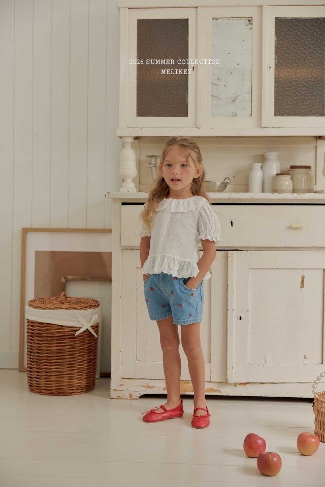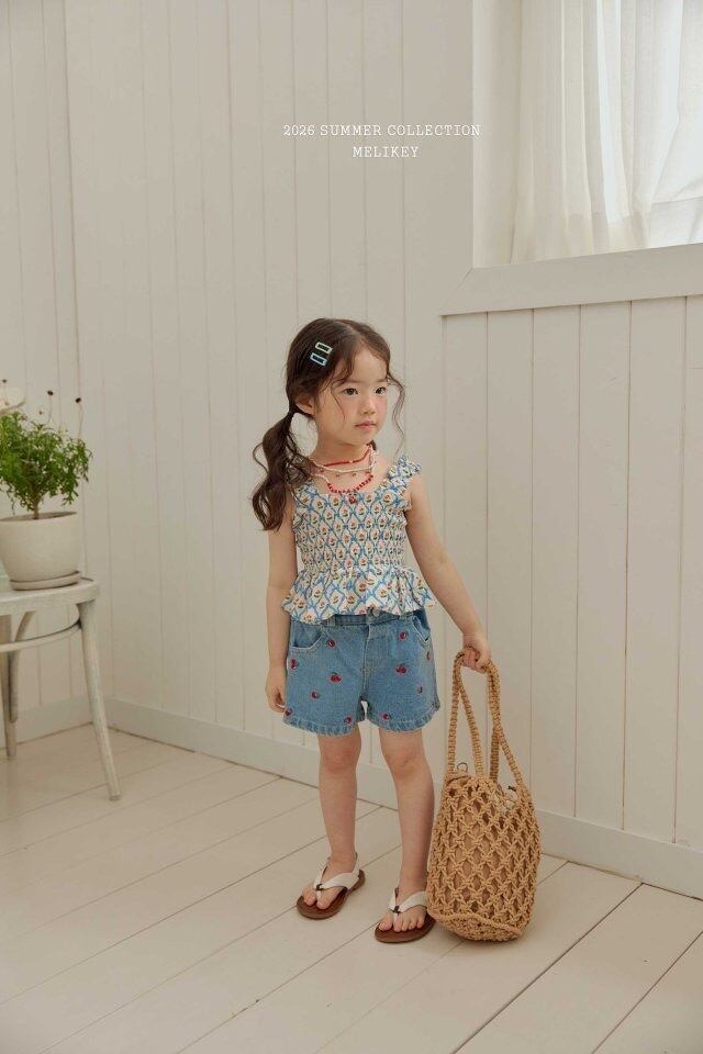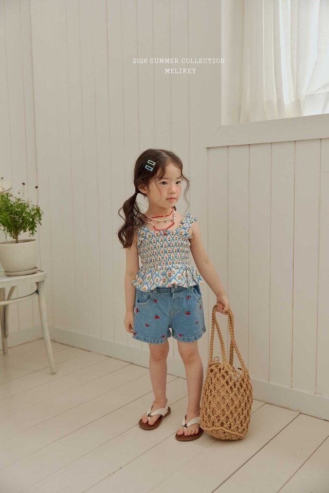 予約 : Mini cherry denim shorts〔melikey〕