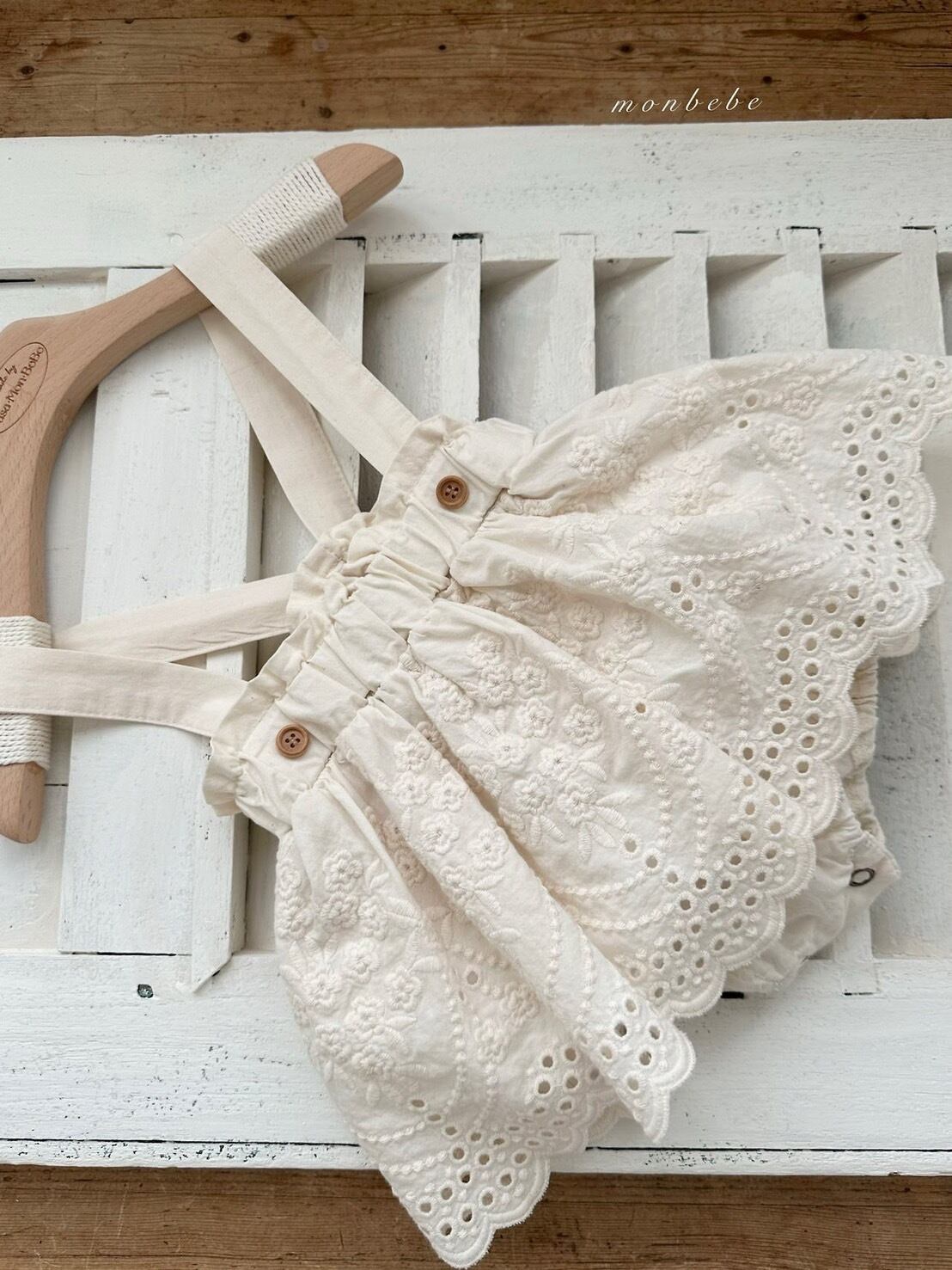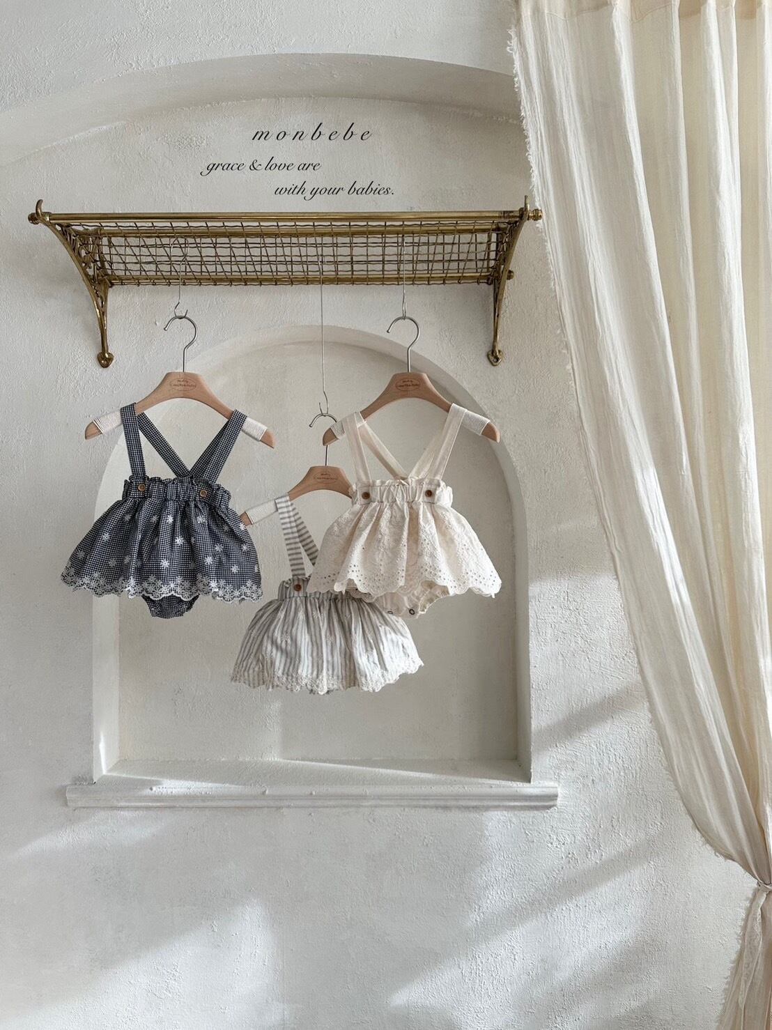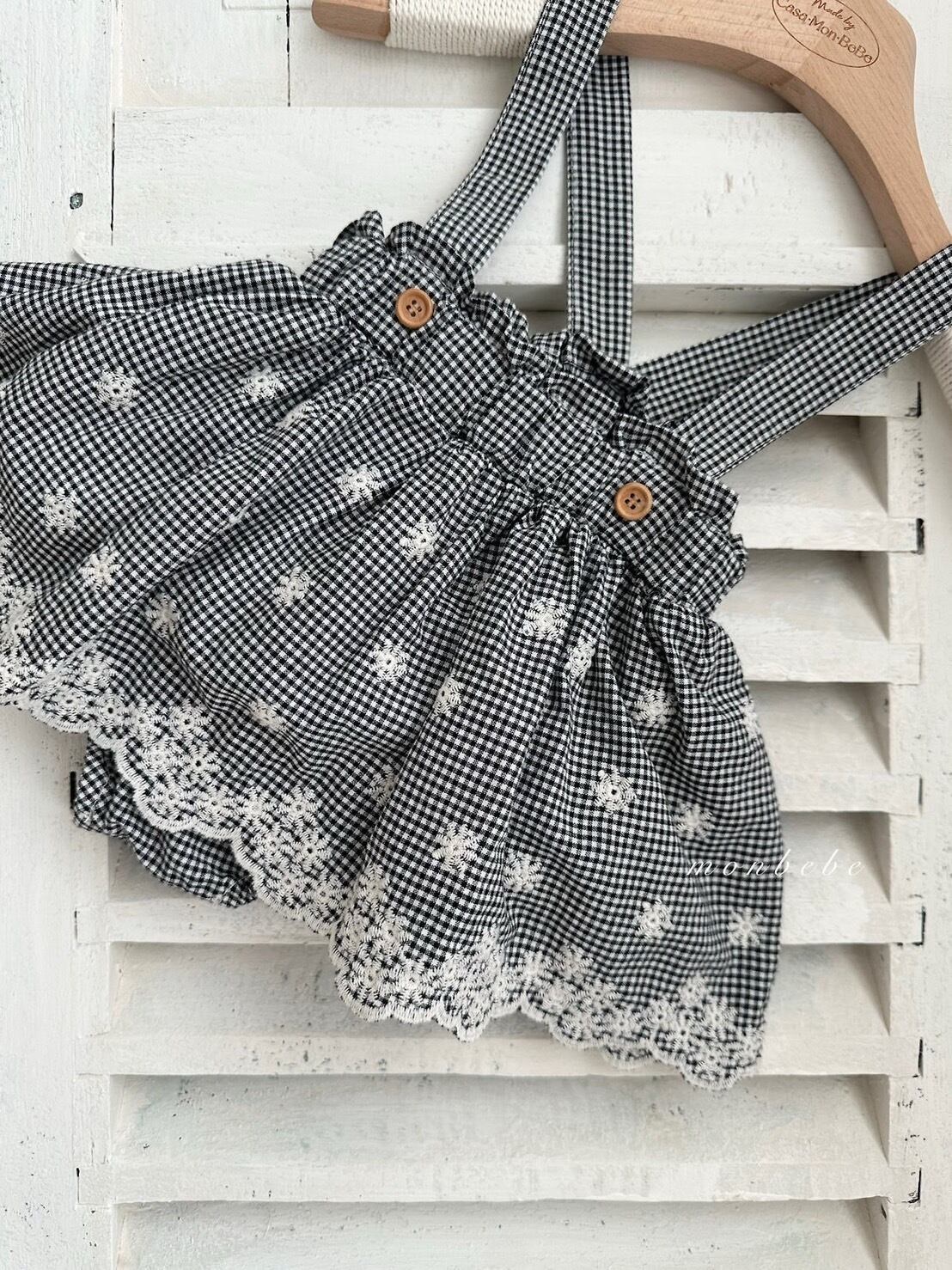 予約:Embroidered suspenders skirt bloomers〔monbebe〕